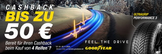 Winter- oder Ganzjahresreifen PKW- oder LLKWReifen von Goodyear (≥ 18 Zoll) erhalten Sie einen Cashback von 50 €.
